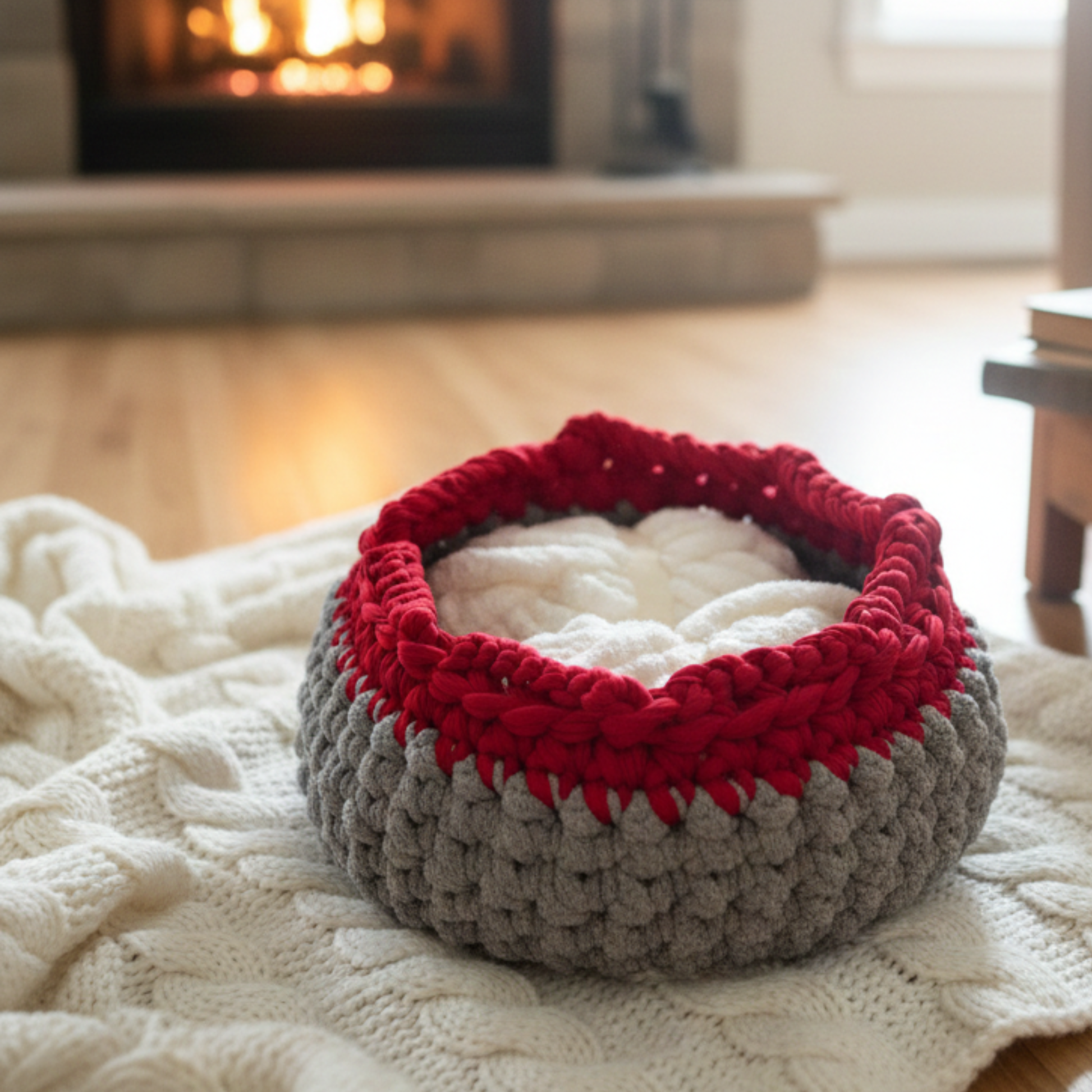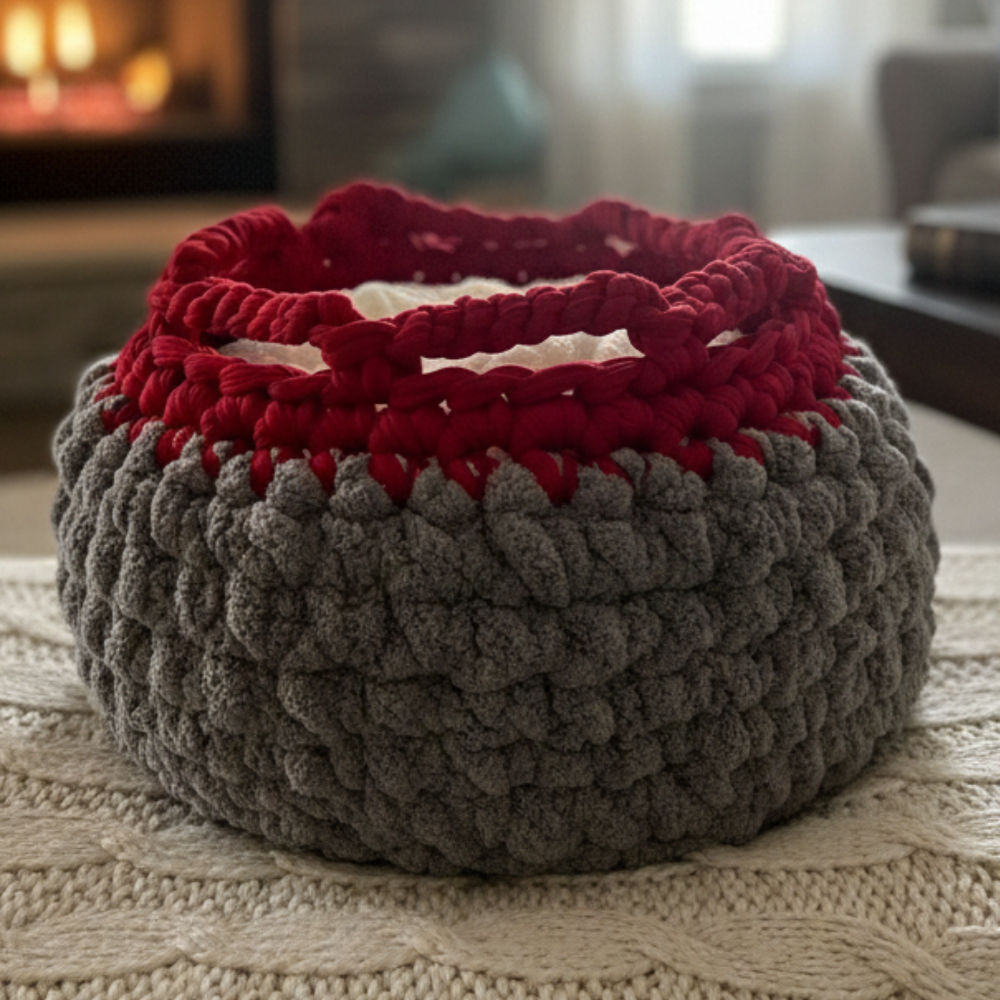 Crimson Comfort Cradle Basket - Crocheted Storage Basket